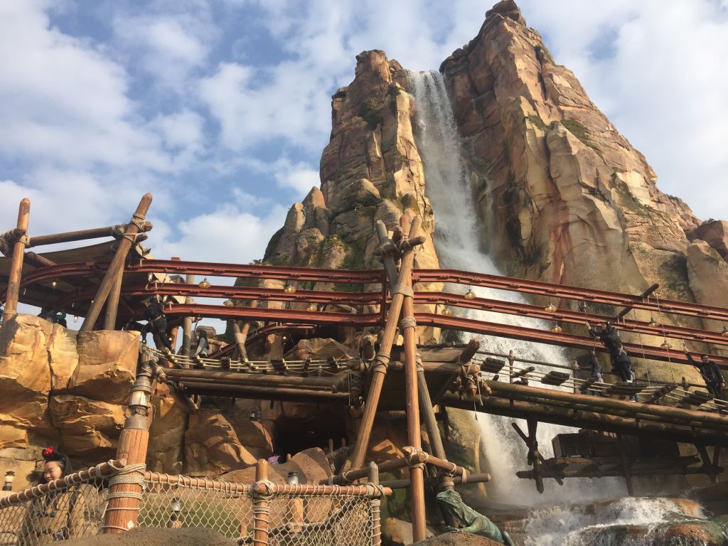 C’est la vraie surprise du séjour ! Ce n’est pas une attraction classique, puisqu’elle fait appel à des qualités physiques qui n’avaient jamais été utilisées dans les parcs Disney avant. Ici, vous allez devoir utiliser votre adresse, votre équilibre et votre endurance pour visiter les cavernes du Mont Apu Taku. Ce parcours type accrobranche est une vraie ode à l’exploration : tantôt il va falloir longer les parois d’une caverne sur un corniche très fine, tantôt il faudra marcher en équilibre sur des troncs au-dessus d’un précipice. Même si vous êtes en sécurité, accroché avec le harnais, vous ne resterez pas insensible au vide sous vos pieds. Peut-être pour la première fois dans une attraction Disney, j’ai ressenti une véritable peur à faire quelque chose. Et puis on se lance, on respire calmement (surtout, on ne regarde pas trop en bas) et on franchit l’épreuve. On a une vraie sensation d’accomplissement : pendant quelques minutes, on ne se prend pas pour un explorateur, on est l’explorateur !