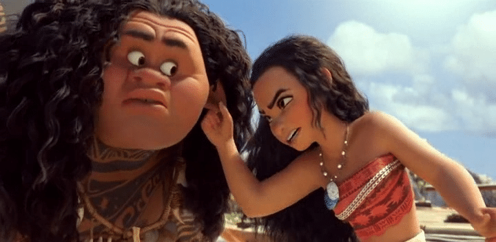 Pour les polynésiens, le tatouage est lié à l’intime et à l’histoire personnelle de chacun. Il se gagne après avoir fait face à des épreuves et façonne les individus. Comme un rite initiatique, il occupe une place primordiale dans la culture polynésienne et le film ne manque pas de nous le rappeler. De nombreux personnages portent ainsi leur propre motif, y compris Grand-Mère Tala avec le symbole de la raie, omniprésente dans l’ensemble du film. Ces tatouages sont le témoignage le plus direct de l’authenticité du film. Malgré une vive polémique concernant Maui avant sa sortie (nous n’allons pas revenir dessus, vous pouvez regarder cet article de Radio Disney Club pour en savoir davantage), le pari est gagné, haut la main !