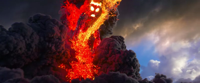 Vaiana contraste totalement avec Maui, qui, malgré son statut de demi-dieu, est un personnage hautain et très arrogant. Lui aussi est utilisé à contre-emploi : il est une espèce de variation du Génie d’Aladdin (réalisé par Musker et Clements aussi, tiens donc), mais les similitudes s’arrêtent là à cause de son caractère à priori détestable. Il faudra du temps pour s’habituer au personnage, pour briser la glace et finalement s’attacher à lui. C’est d’ailleurs à l’apogée de ce voyage, vers la fin du film, que cela se produit enfin.